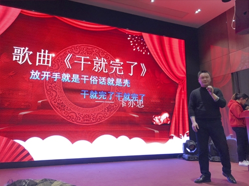 大會(huì)在公司董事長(zhǎng)傅麗艷女士精彩而真情的新年致辭中拉開了帷幕。致辭中,董事長(zhǎng)傅麗艷女士向全體員工表達(dá)了衷心的感謝及新年祝福,對(duì)公司2018年的工作成績(jī)給予了充分肯定,同時(shí)也對(duì)公司未來發(fā)展提出了新的要求和期望。鼓舞全體員工在2019年再接再厲,取得更加輝煌的成績(jī),開創(chuàng)新藍(lán)新的時(shí)代。隨后傅麗艷女士獻(xiàn)唱一首《掌聲響起來》,給大家?guī)硪粋€(gè)精彩的開頭,表達(dá)了對(duì)自己、員工以及公司明天的美好祝愿。