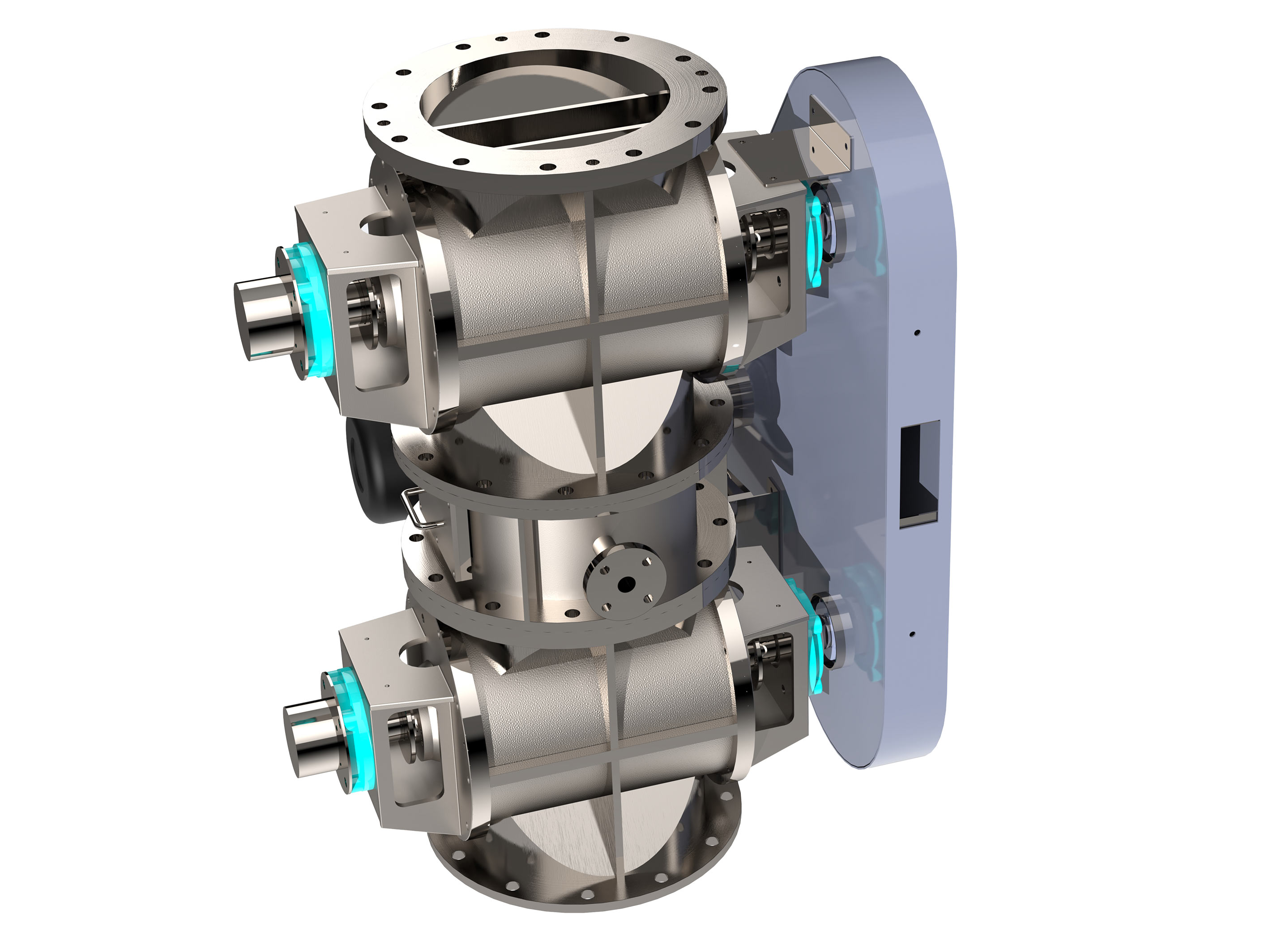 雙層氣鎖閥又稱雙層翻板閥主要作為旋風分離器與除塵器以及各種烘干機,料倉等設備底部的給卸料裝置,防止外風進入其廣泛應用于化工,食品,建材,冶金,電力等行業。